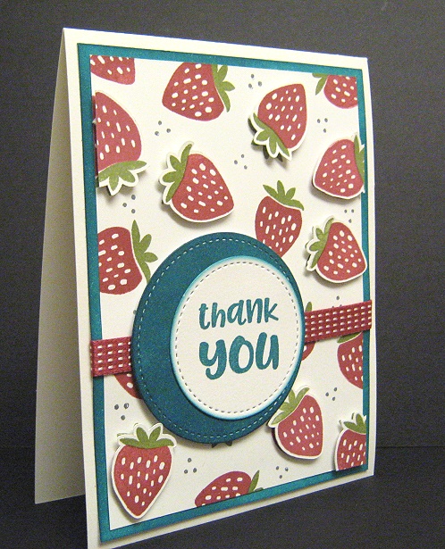 5. Thank You Berry Much - I needed a break from working on my Christmas cards and wanted to do something using my new ScanNCut... but what? My muse suggested I just reach into my bin of stamps I have at my feet (don't ask) and make something with whatever set I randomly grab. The winner was a Catherine Pooler Designs set called I Pick You, a fruit-themed set. I pretty much knew right away what I wanted to do: